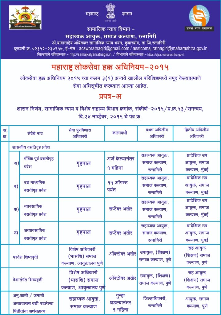 • महाराष्ट्र लोकसेवा हक्क अधिनियम २०१५